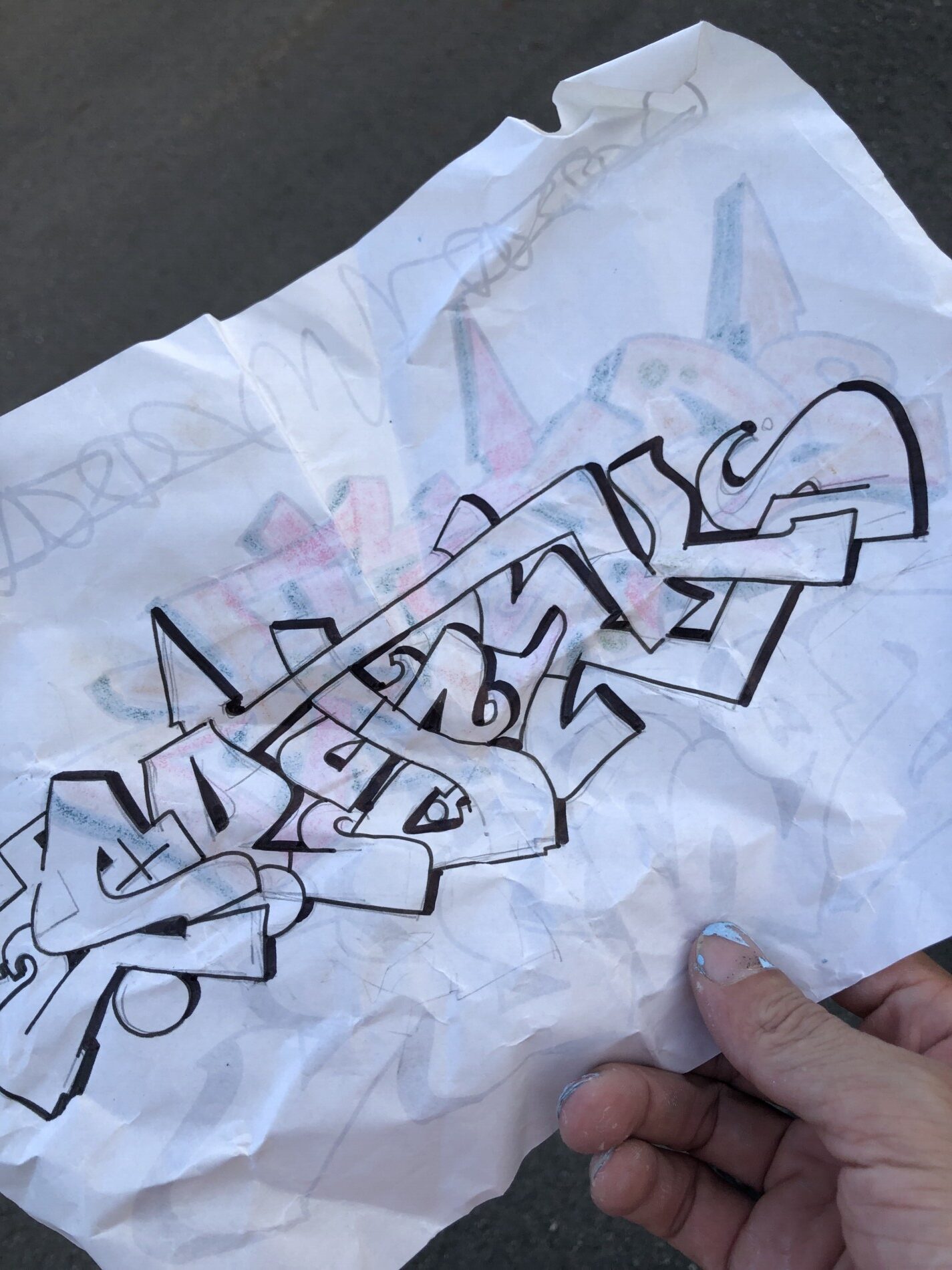 於是,這幾天我不斷練習草圖,試著把 中英文 Graffiti 字融合在同一幅作品裡。