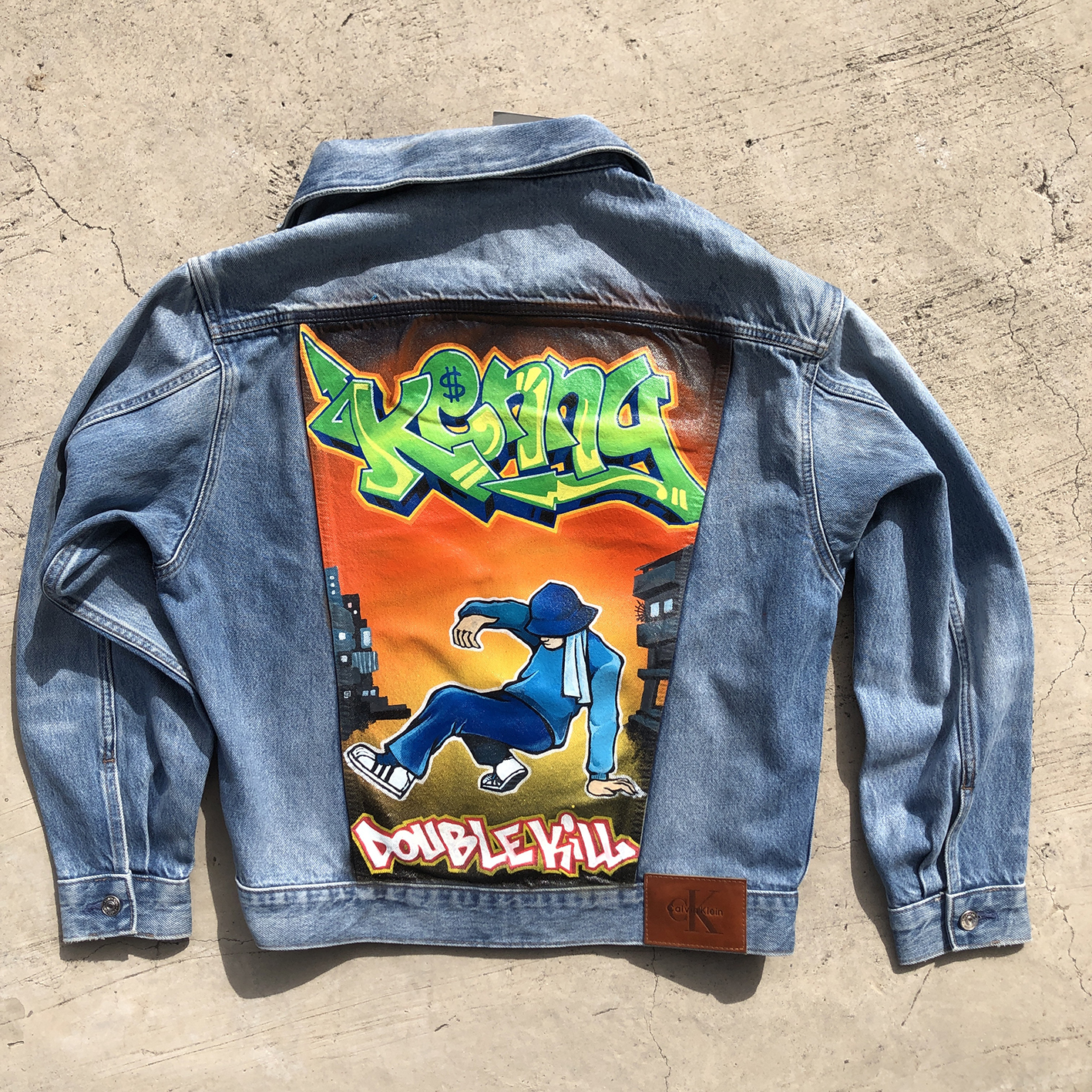 這次非常榮幸接受來自台中街舞前輩 STYLE KENNY 的委託,為他創作一套獨一無二的 手繪塗鴉牛仔外套與褲子。Kenny 是台灣街舞圈的重要人物,多年來持續推動 BBOY 文化在台灣深耕,對台中甚至全台灣的年輕舞者有深遠影響。