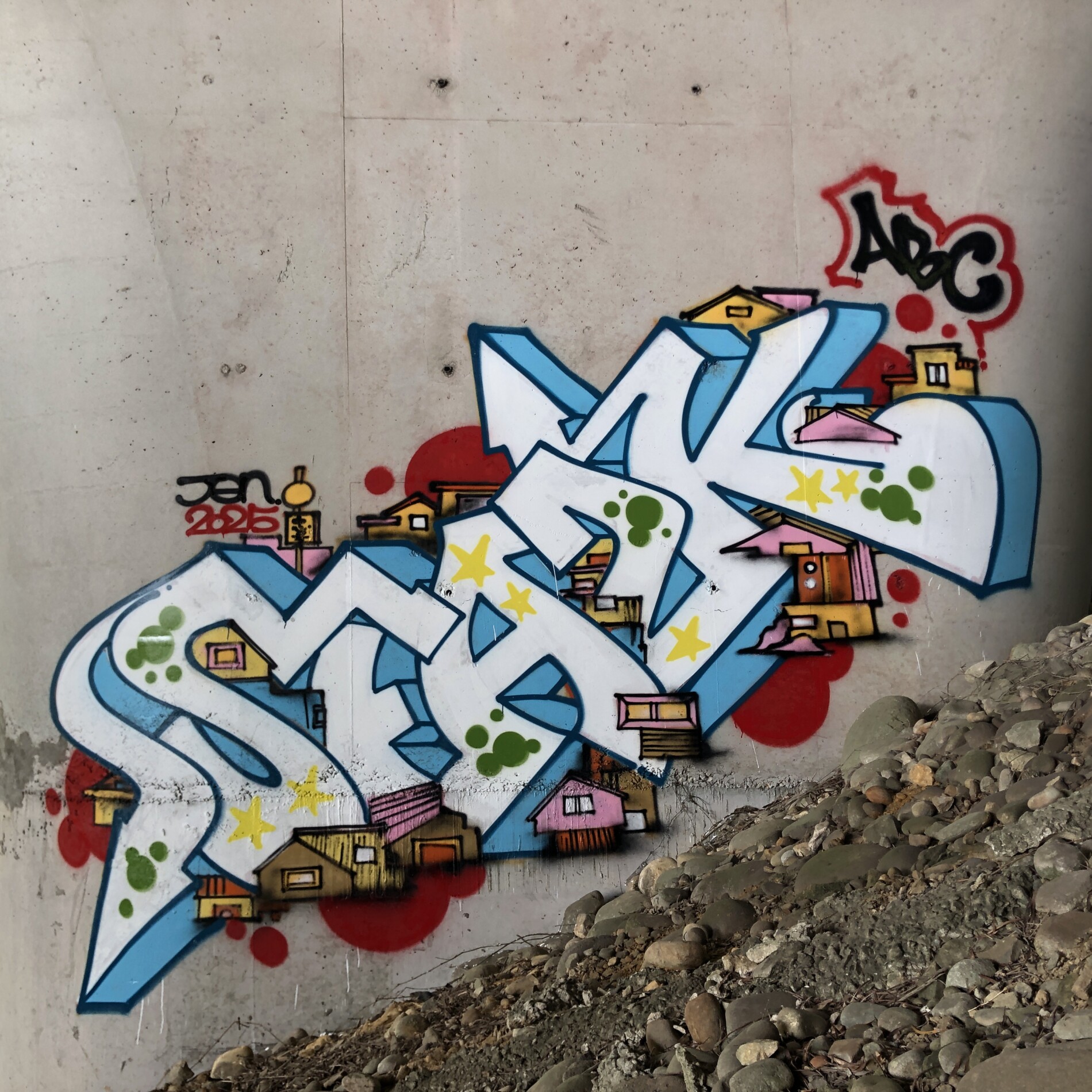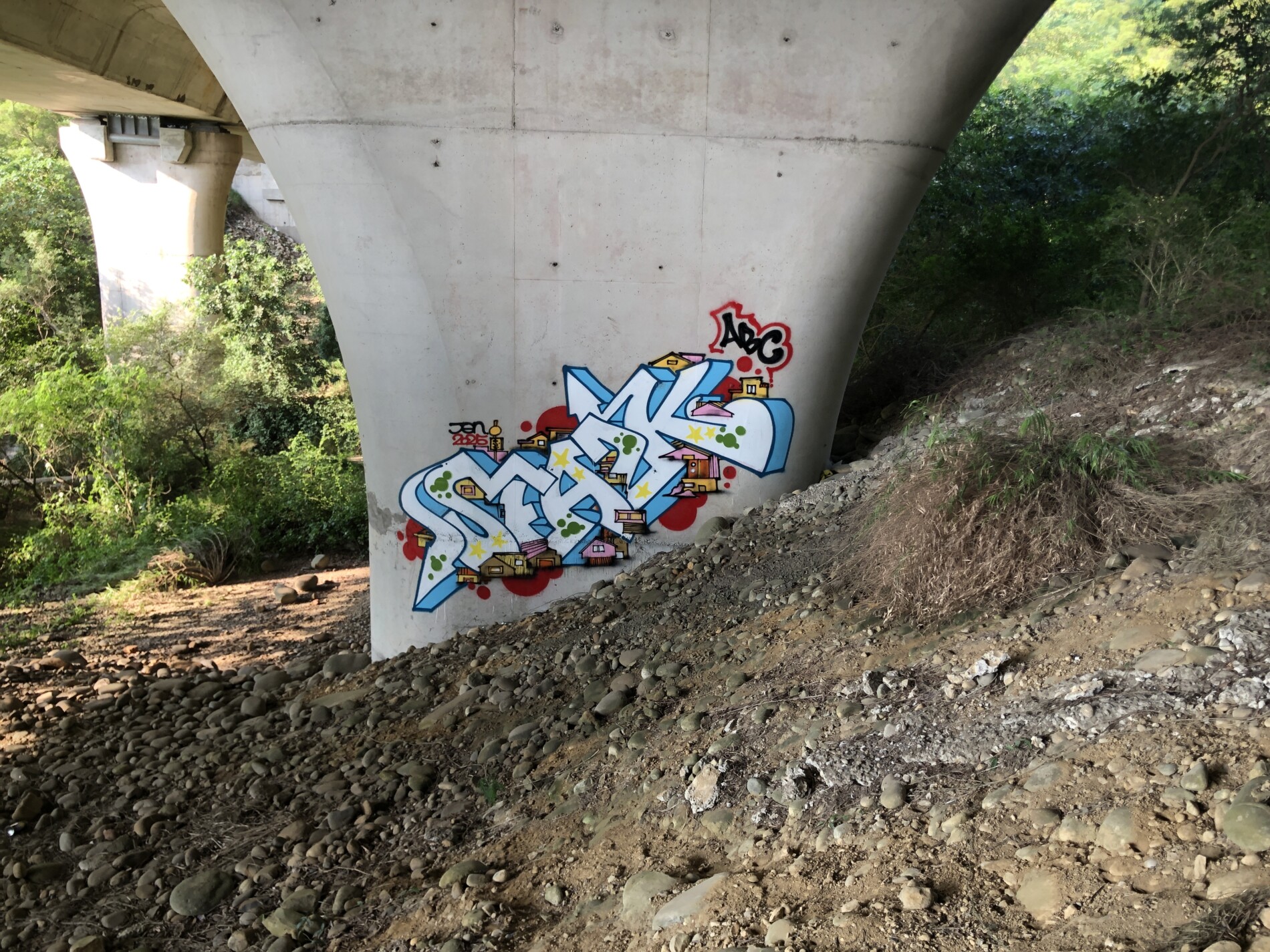 As usual, no sketch. Just hopped on the scooter, let the ride guide me, trusting instinct to find the right spot. Ended up at an old hidden spot with shade from the trees. The wall I had in mind didn’t feel right, so I switched plans—hit a pillar instead. Tried pushing a diagonal upward letter flow, laying it down step by step, letting the style move naturally.